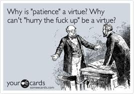 It has been said have very little patience, which is mostly accurate. I think I can be both extremely patient and massively impatient across different issues of different magnitudes at different times.